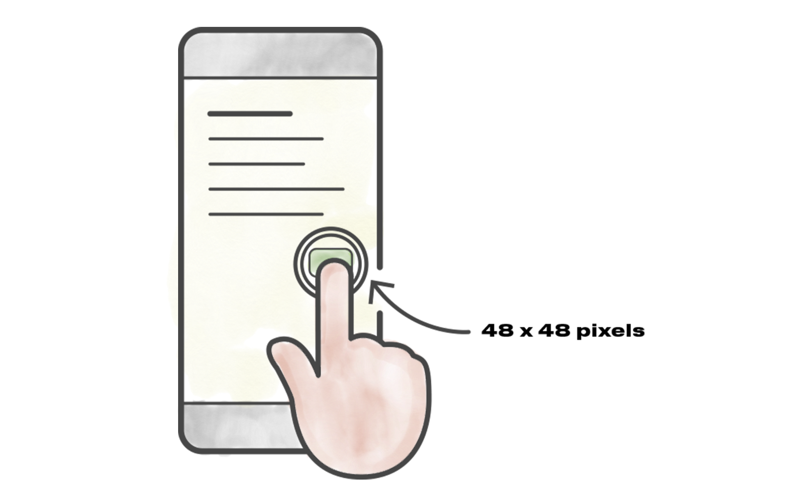 Every element that is added to a screen creates more complexity. Be deliberate with your choices. Create a clear sense of hierarchy. Make sure actionable items are straightforward. You may be able to interact with a small screen quite easily but think of those who lack fine motor skills. Can they easily tap on a particular button without accidentally hitting others? The minimum tap target area recommended by Apple is 44 by 44 pixels. Android recommends a slightly larger tappable region of 48 by 48 pixels.