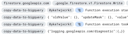 Click Save, then in GCP, go to Logging > Logs Explorer and wait til you see log entries from the Cloud Function as well as BigQueryWrite.AppendRows entries similar to the following: