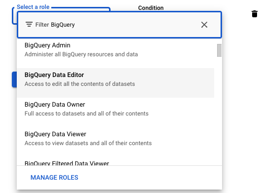 In order for Pub/Sub BigQuery Subscriptions to create data in BigQuery written to a Pub/Sub topic, we have to give the Pub/Sub service account some permissions. To do this, perform the following steps: